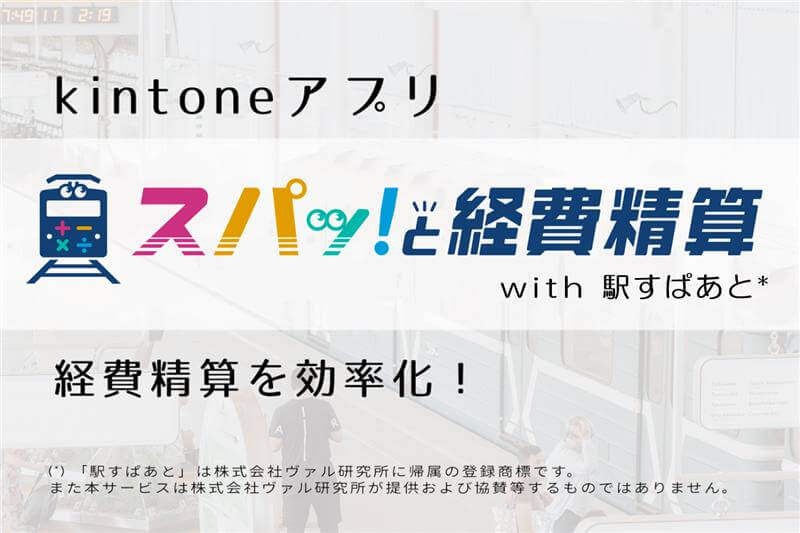 「駅すぱあと」は株式会社ヴァル研究所(※)が開発した経路探索エンジンですが、弊社では「駅すぱあと」とkintoneを連携させて経費精算業務を効率化させるために「スパッ!と 経費精算 with 駅すぱあと(*)」をkintoneアプリとしてご提供しています。