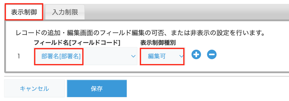 設定方法も簡単。フィールド名を指定して「編集可」としてあげればOKです。