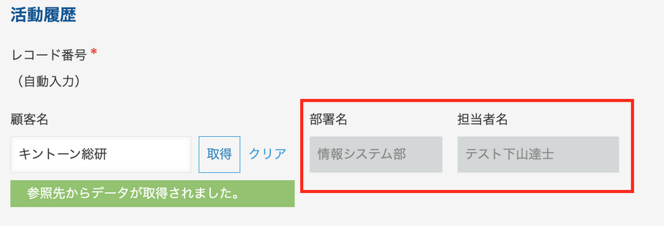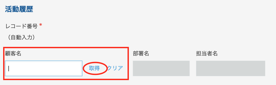 活動履歴アプリで顧客情報を顧客管理アプリからルックアップする場合の設定方法をご説明してきたので、今度はその設定した場合を例にして、ルックアップの使い方を見ていきましょう。